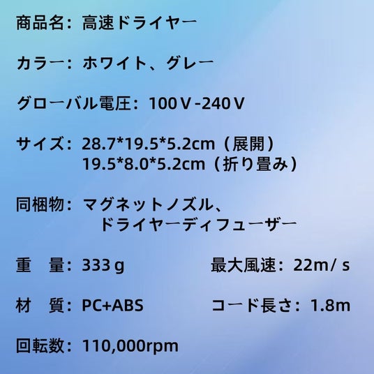グローバル電圧対応!世界中どこへでも、変圧器不要で使える。出張や旅行に必需ドライヤー折りたたみ可能!
