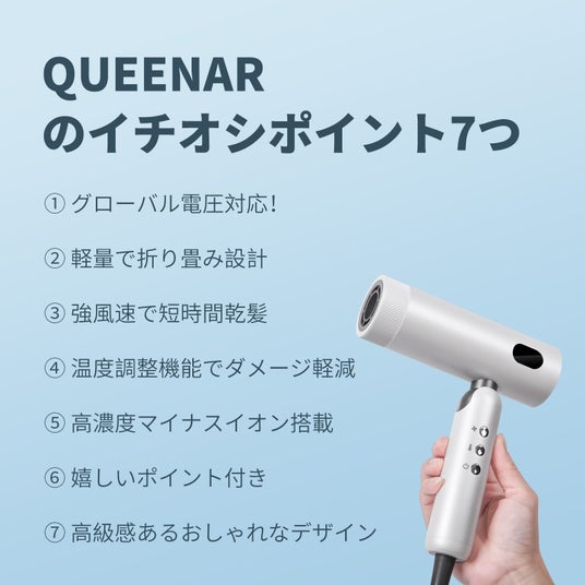 高温の風が髪を乾かす時代は終わりました。QUEENAR高速ドライヤーは4段階の温度モード搭載、地肌に優しい低温モードから速乾ハイパワーモードまで、髪質を守りながら理想のスタイルを完成させます。