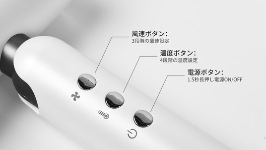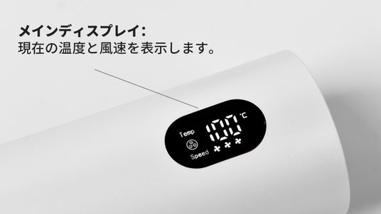 温度ボタン:4段階の温度設定1回押すごとに温度設定が切り替わり、ディスプレイに25℃/60℃/80℃/100℃が表示されます。 電源ボタン:1.5秒長押し電源ON/OFF