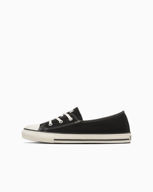 オールスターのアイコニックなディテールはそのままに、甲を浅く設計したパンプスパターンを採用。足首のラインを強調し足元をすっきりと軽快に見せるこのデザインは、スニーカーの歩きやすさと女性らしい美しさを両立させています。