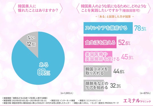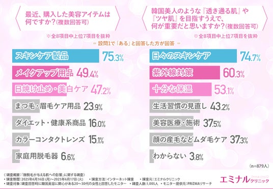 そこで今回、医療脱毛の「エミナルクリニック」は、韓国美容に関心がある20~30代の女性を対象に、「顔脱毛が与える肌への影響」に関する調査を実施しました。