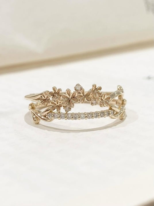 今回の展開では、これまでの19型に加え、新たに2型が加わった全21型をラインナップ。リボンや花、蔦のような動きを感じるデザインのほか、ダイヤモンドを美しく並べたタイプなど、デザインごとに異なるこだわりが詰まっています。石の配置や地金のふくらみに至るまで、繊細な設計が施されており、一本ごとに異なる個性が光ります。