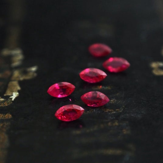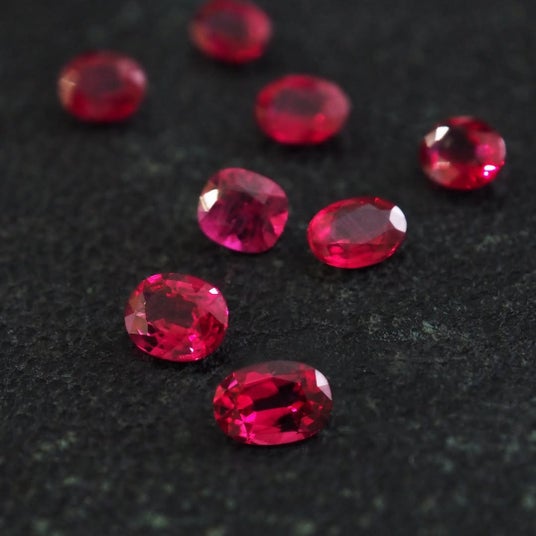 深く燃えるような赤から、軽やかでフレッシュなホットピンクまで、色味・カット・サイズの異なるさまざまなルビーをご用意いたしました。中には、放射状の星が浮かび上がる希少なスタールビーも並びます。