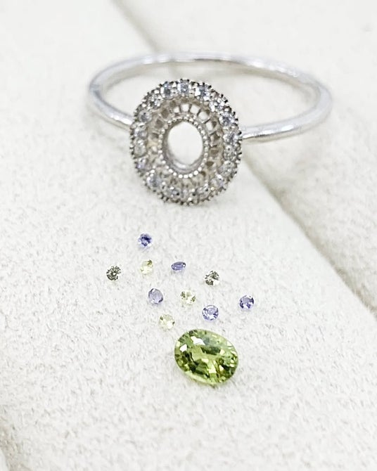 宝石との出会いはもちろん、ご希望に応じてジュエリーへのお仕立ても可能です。お気に入りのルースを見つけたその場で、デザインのご相談やセミオーダーのご案内も承ります。