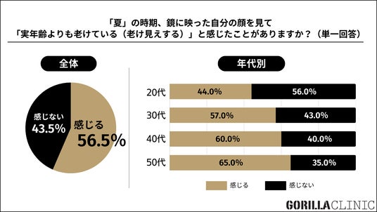3.男性の56.5%が「夏老け」を自覚。50代では65.0%が実年齢以上の衰えを痛感