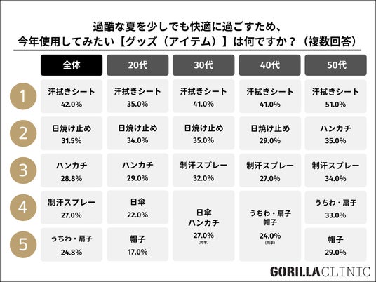 7.今年使ってみたい夏の対策グッズ1位は「汗拭きシート」。依然として”表面の不快感ケア”が主流