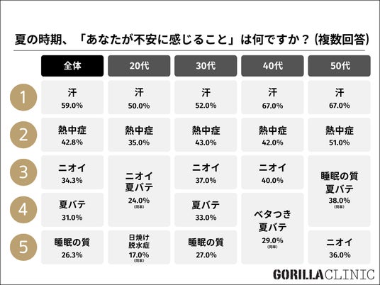 1.夏の不安1位は「汗」。約3割が”見えない内的不調”も危惧