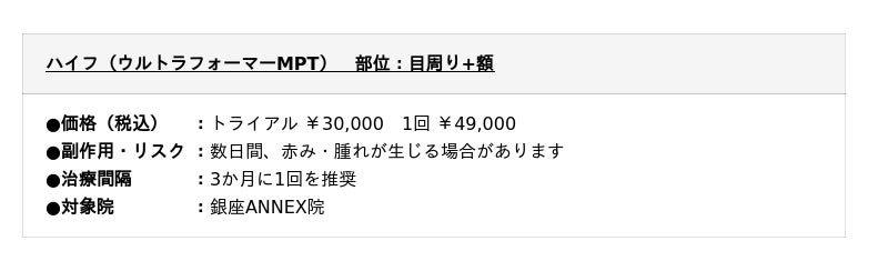 ■【ゴリラクリニックのクマ取り治療】 ハイフ(ウルトラフォーマーMPT)治療詳細
