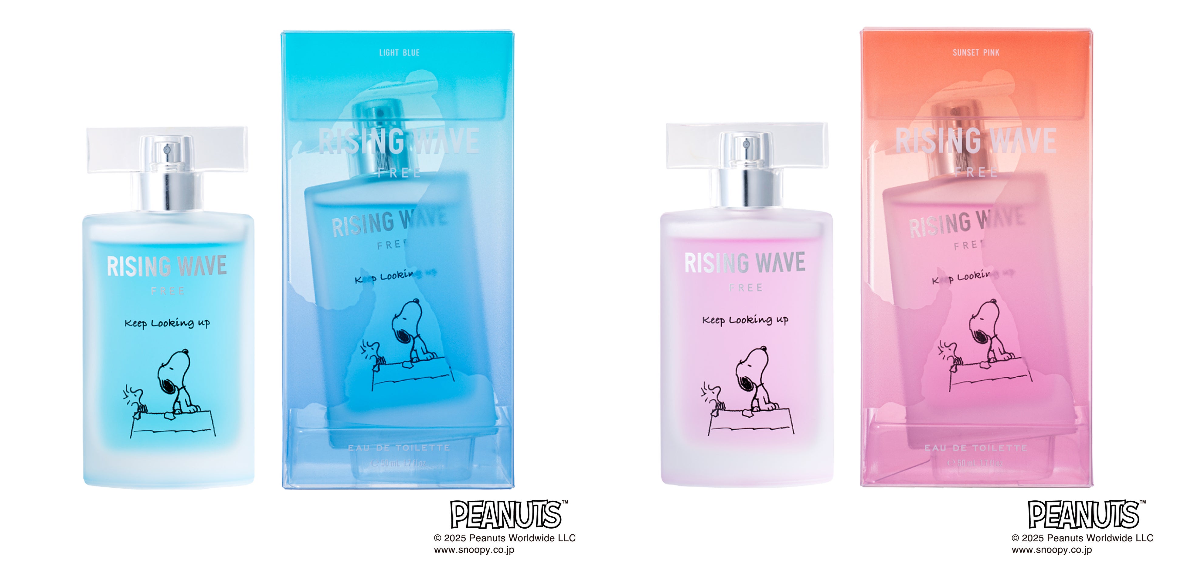 株式会社フィッツコーポレーション(本社:東京都港区、代表取締役:富樫康博)は、メンズ香水ブランド「ライジングウェーブ(RISING WAVE)」より、世界中で愛されている「PEANUTS(ピーナッツ)」のコミックから、スヌーピーとウッドストックがデザインされた香水「ライジングウェーブ フリー ライトブルー オードトワレ スヌーピーデザイン」「ライジングウェーブ フリー サンセットピンク オードトワレ スヌーピーデザイン」の2種を、2025年11月1日(土)から数量限定で発売いたします 。