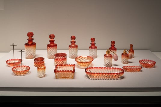 《ローズ色ガラス化粧セット》1940年頃 Photo: Ken Kato