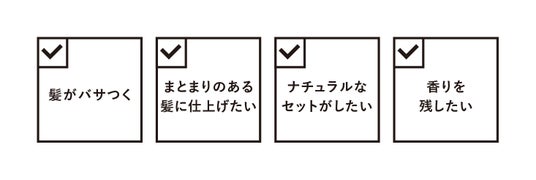 髪に自然なツヤとまとまりを与え、しなやかに動く、スタイリングしやすい状態へ導きます。