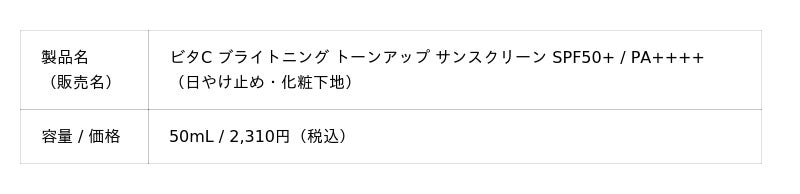 くすみ*¹のない澄み渡るツヤ肌を叶える『ビタC ブライトニング トーンアップ サンスクリーン』