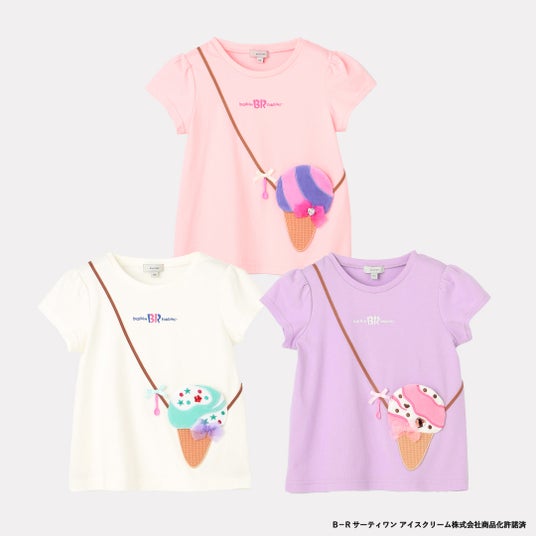 初コラボとなる今回は、サーティワン アイスクリームの人気フレーバーがポシェットになったTシャツ等甘くてかわいいデザインの子ども服を4型と、大人も使えるトートバッグやポーチなどの雑貨アイテムを3型展開します。