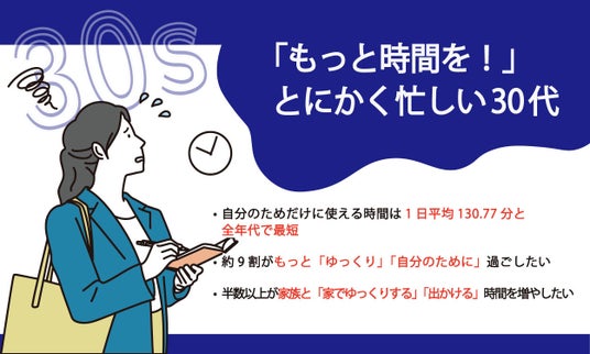 - 64.0%が「時間に追われ」、56.9%が「1日24時間では足りない」。- 1時間の価値、オンタイム4,780円、オフタイム12,727円。