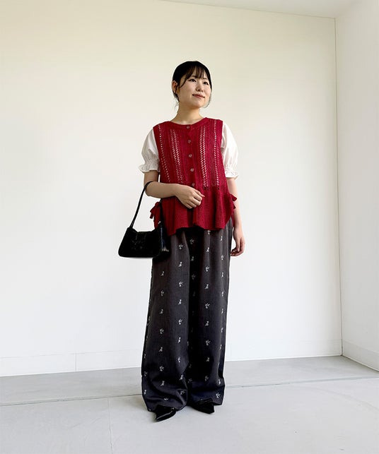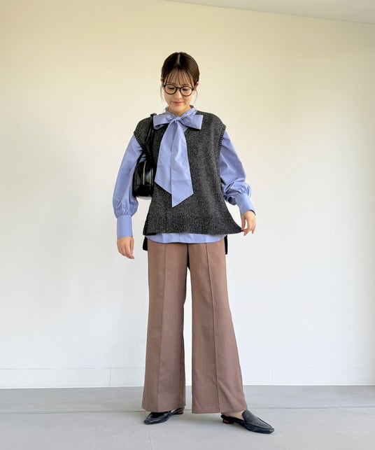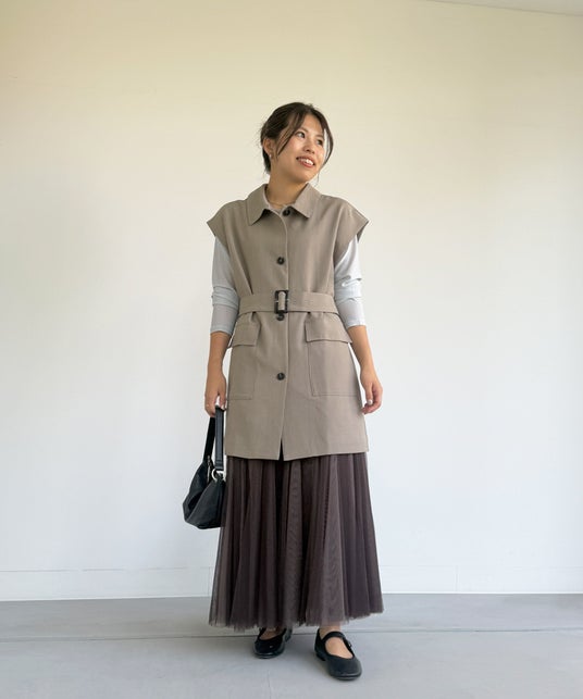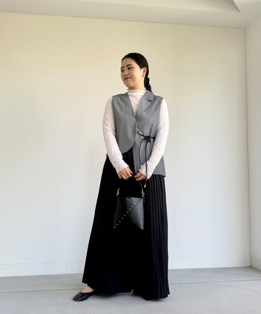 ベストをシャツに重ねるだけで、一気にトレンド感がアップ。晩夏にはTシャツやタンクトップと。秋冬はタートルネックやブラウスと合わせることで、季節を超えた着こなしの幅が広がります。