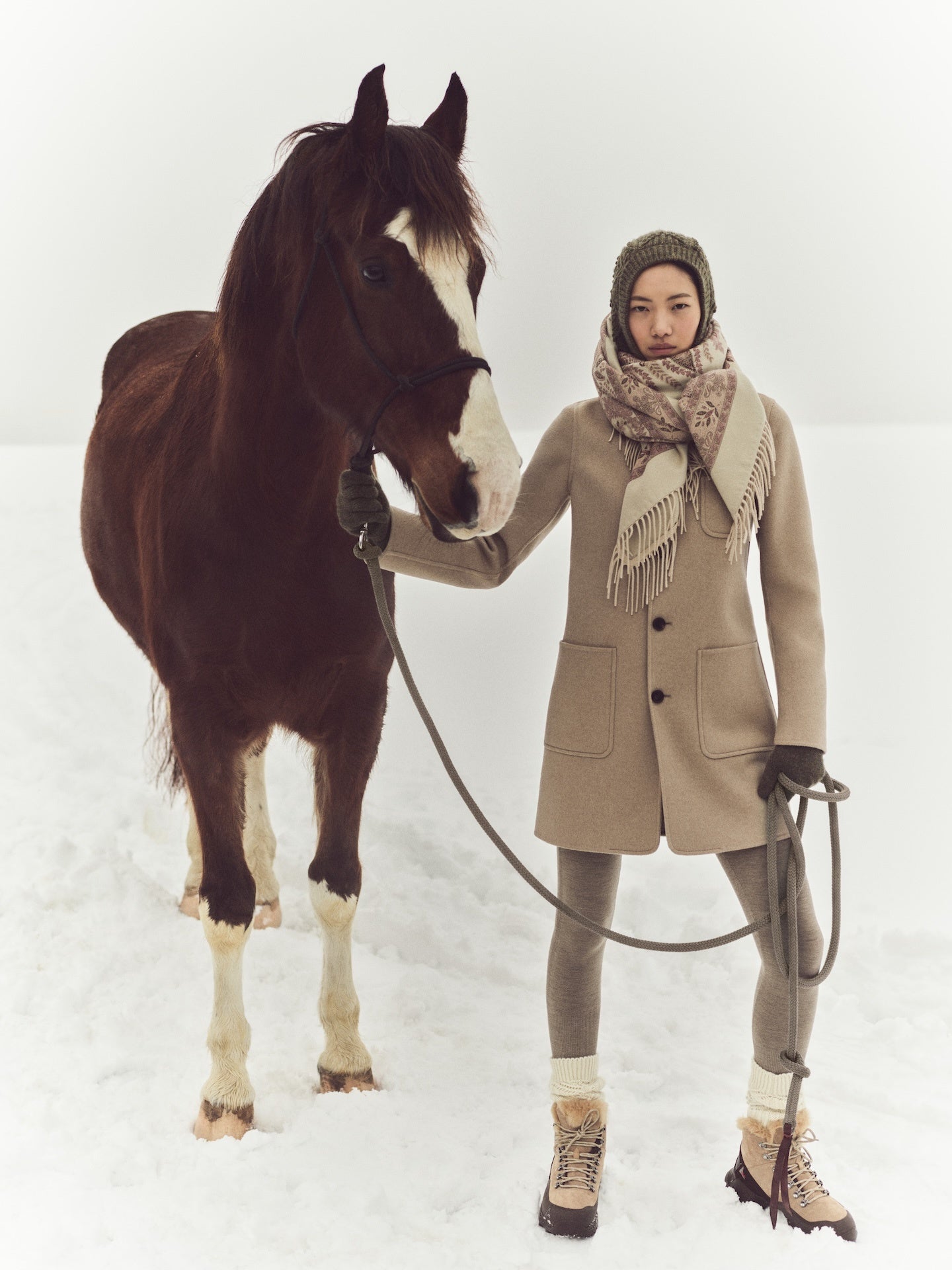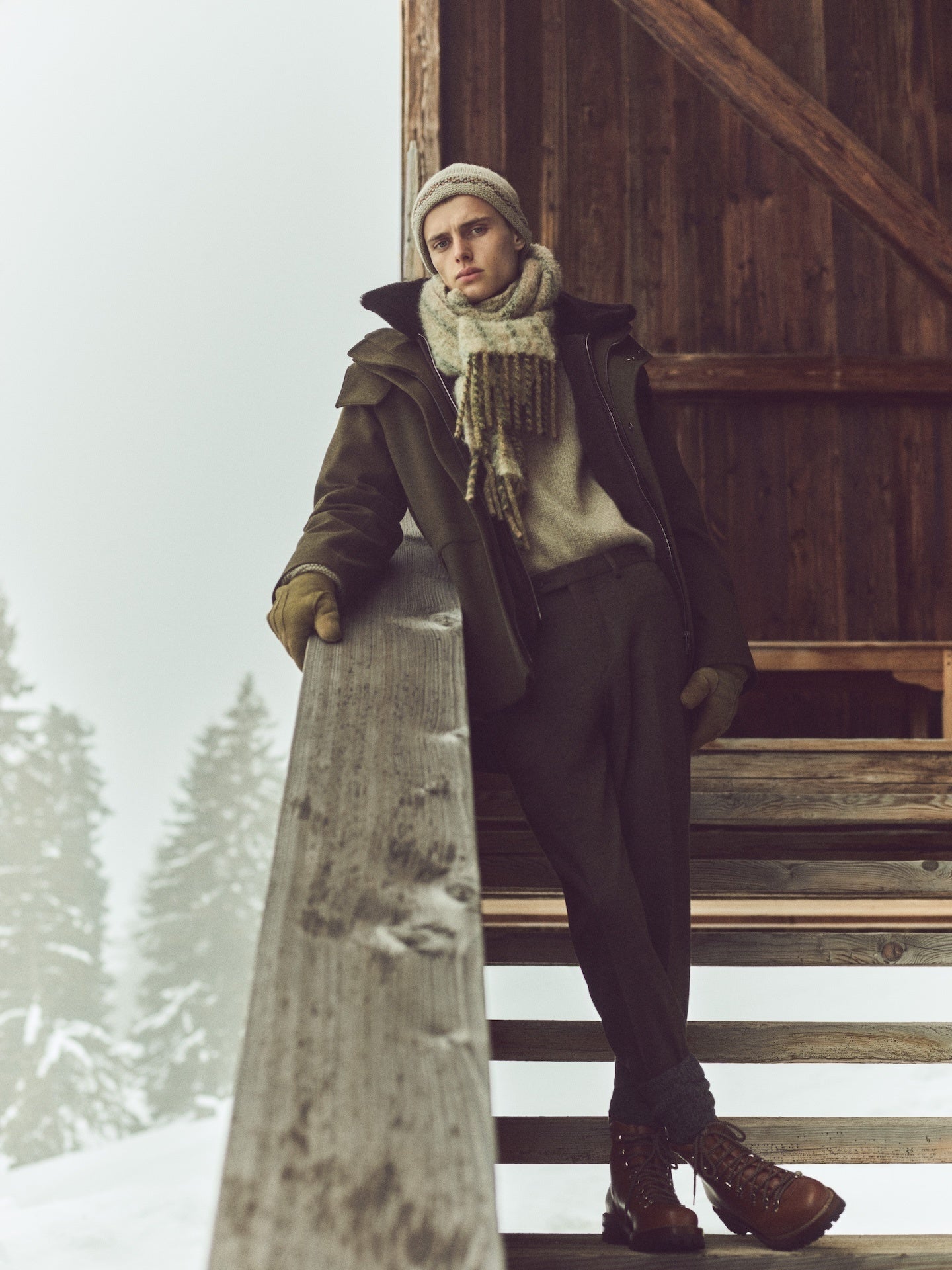 レザルクのスキー場の雪に覆われた峰々からインスピレーションを得たアフタースキーとスキーのスタイルは、ゲレンデのスリルからアフタースキーのリラックスタイムまで、山を愛する人々を魅了します。アイサー・ジャケットなど、柔らかく包み込むようなアイコニックなスタイルは、機能的なキャッシュ・ストームと、贅沢なカプラ・カシミヤの2種類で展開。トラベラー・ジャケットもキャッシュ・ストームで仕立てられ、スパーニャ・ジャケットはカーリーファーを用いています。エレガントなカシミヤのウェアは、職人技のニットウェアの最高基準で仕上げられた、真の美の逸品です。キャッシュ・シルクの豊かなジャカード柄は、ノース・フリース・パンツの伝統的な魅力と、ダブルアルパカの心地よい肌触りと絶妙に調和しています。
