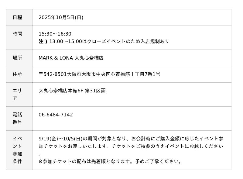 是非この機会にMARK & LONA大丸心斎橋店へお越しください。