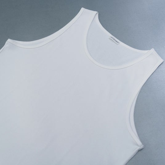 店舗オープンを記念して、数量限定でノベルティをご用意しました。とろけるように柔らかな肌ざわりの「スビンプラチナムフライス」を使用したタンクトップです。ベーシックなデザインでスタイルを選ばずお使いいただけます。