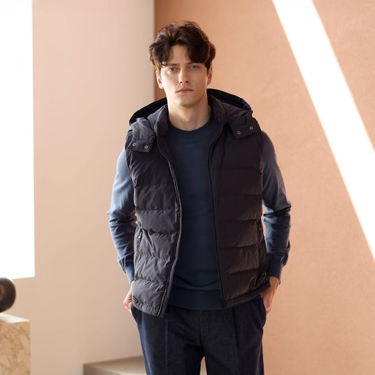 取り外し可能なダウンベスト付きのライナーを備えており、長いシーズンで着用できるのも魅力です。さらに、襟のファスナーを開閉することでフードを出すことができ、着回しのバリエーションが豊富なアウターに仕上がっています。