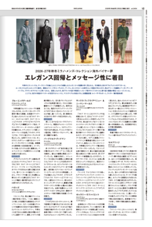 2月2日号の「WWDJAPAN」では、1月の2026-27年秋冬メンズ・ファッション・ウイークを速報します。