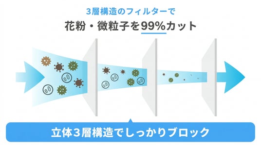 ・3層構造のフィルターで花粉・微粒子99%カット