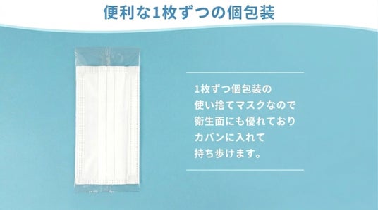 ・衛生的な個包装 1枚ずつの個包装だから、カバンに入れて予備として持ち運ぶのにも便利です。