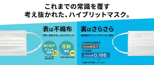 表は花粉や飛沫をブロックする不織布、裏はひんやりアイシングナイロン素材。「ひんやり・さらさら」の使い捨てマスクが、皆様の熱いご要望にお応えして再登場。4月より予約販売を開始しました。