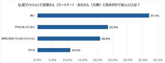 旦那さん(パートナー)・お父さん(父親)の夏ファッションで気になるポイントとして、「臭い」と回答した方が(37.1%)で最多となりました。