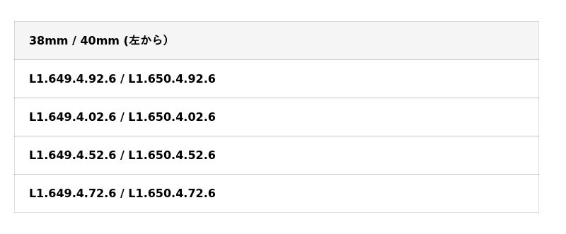 ステンレススティール製(L1.649.4.92.6・L1.649.4.02.6・L1.649.4.52.6・L1.649.4.72.6・L1.650.4.92.6・L1.650.4.02.6・L1.650.4.52.6・L1.650.4.72.6):プッシュピース式開閉システム、マイクロアジャストメント(微調整可能)付き、ダブルセーフティ フォールディングクラスプ付属