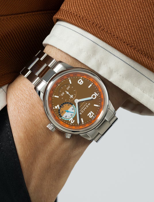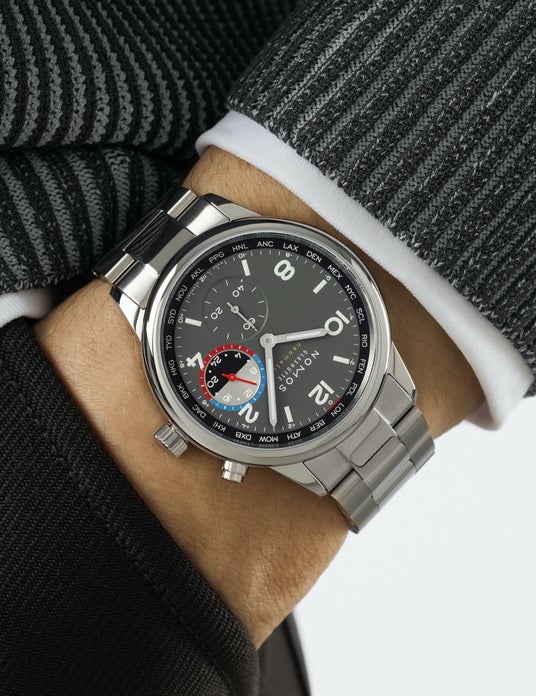 ノモス自社製自動巻きキャリバー、ワールドタイム、24 時間と昼夜の表示