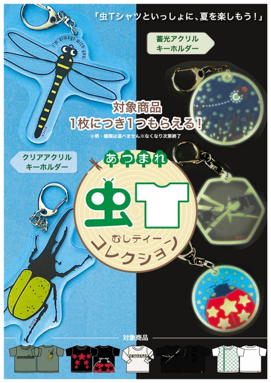 期間中、対象デザインのTシャツをお買い上げの方に先着でオリジナルキーホルダーをプレゼントいたします。