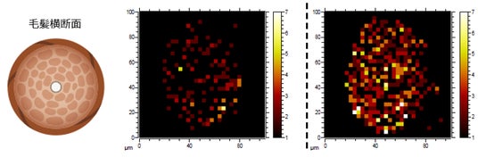 図1 ヘアカラー製剤に配合したシスチンの毛髪への浸透性観察(TOF-SIMS測定※3)