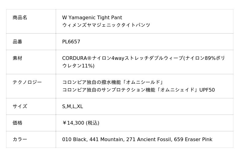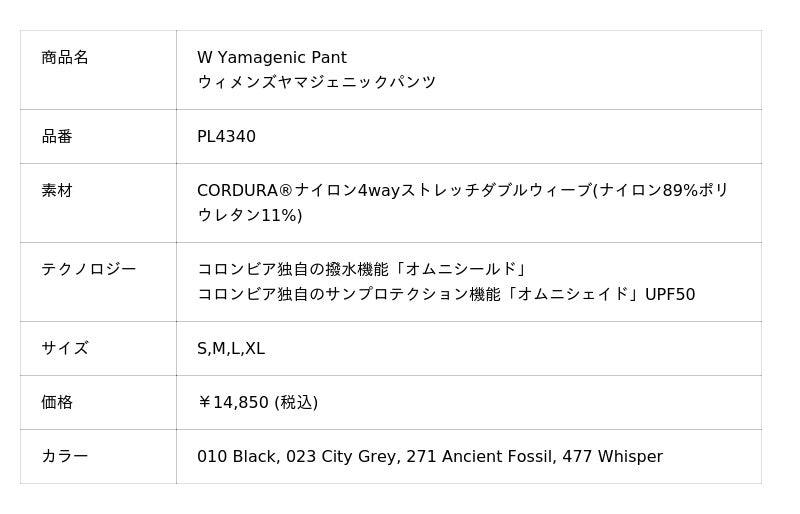 1938年の創業以来、常にオリジナリティが高くイノベーティブなアウトドアウェアを提供し続ける「コロンビア」(株式会社コロンビアスポーツウェアジャパン 新宿区新宿6-27-30 7F 代表:マッスィモ ラッザリ)から、女性のために開発した日本独自の機能性パンツ「Yamagenic Pants(ヤマジェニックパンツ)」が登場します。