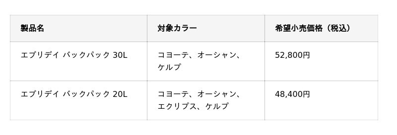 ※エブリデイバックパック30L /20L共に、ブラック、チャコールカラーはキャンペーン対象外です。ご注意ください。
