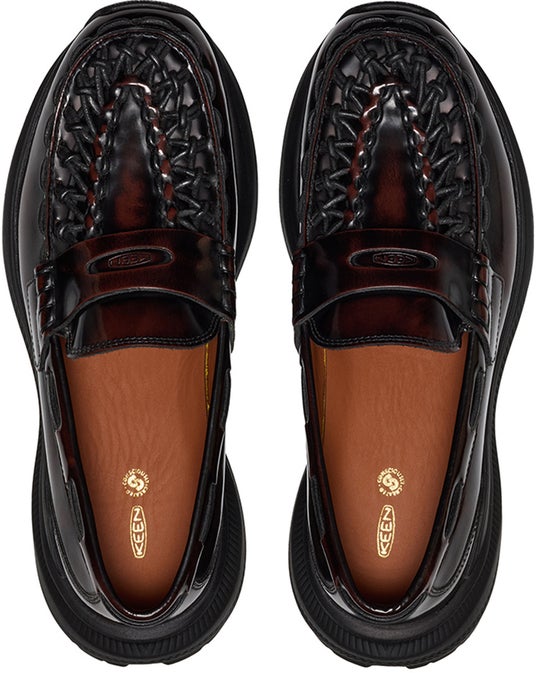 KEENのアイコンでもある「UNEEK(ユニーク)※1」のアッパーデザインを踏襲しつつ、モカシンの要素を取り入れたペニーローファー。伝統的な靴作りの技術を駆使し、手作業で縫い上げ、編み込んでいます。ソールには、KEEN独自のテクノロジーを搭載。カーブを描くソールユニット「KEEN.CURVE(キーン・カーブ) ※2」を採用することで、まるで転がるような歩き心地を提供。フォーマルなデザインながらも、疲れにくくアクティブに楽しめます。またシリアルナンバー入りの足数限定スペシャルデザインです。