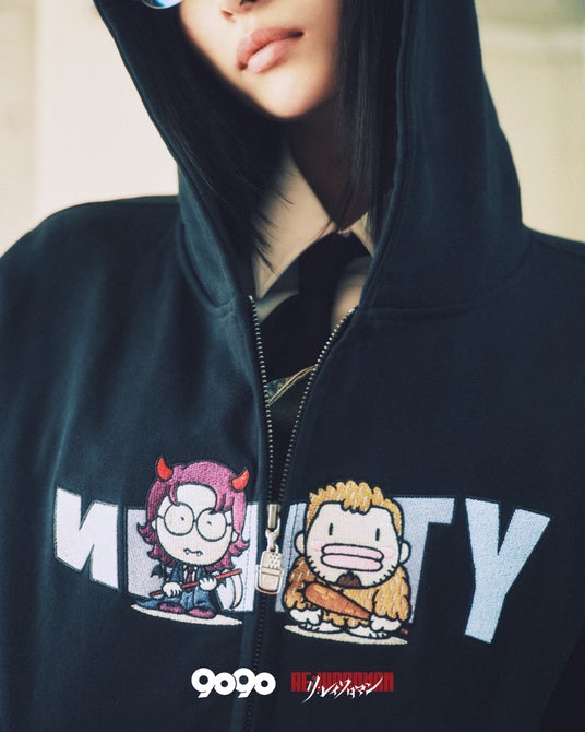 9090を象徴するOG Logo Setupをはじめ、Hoodie、Keychain、Stickerなど、全11品番をラインナップ。本企画のために制作した限定オリジナルロゴに加え、令和ロマンのくるまさん、ケムリさんをモチーフにしたオリジナルキャラクターを用いたデザインを展開します。
