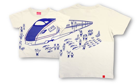 新幹線のカッコよさと市場のひとたちのほっこりかわいいが共生するデザインに仕上がっています。