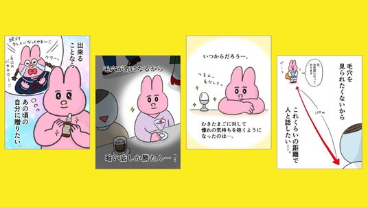 「いつからだろう…。むきたまごに対して 憧れの気持ちを抱くようになったのは…。」「毛穴が気になるから、暗い店しか勝たん…!」など、“毛穴あるある”を盛り込んだイラストに思わず突っ込みたくなること間違いなし。つい二度見したくなるユーモア満載のイラストで、渋谷を行き交う人々に「ケアナボーテ」の魅力をお届けします。