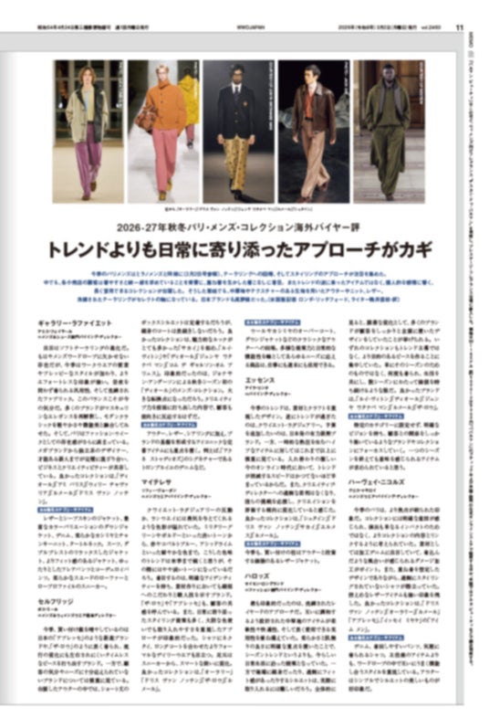 1910年に米フェアチャイルドが創刊した「WWD(Women’s Wear Daily)」の日本版ファッション業界専門紙「WWDJAPAN」は、ファッション・ビューティ業界のビジネス、トレンドニュースをはじめ、業界人インタビューなど最新情報が盛りだくさん。また、週刊紙「WWDJAPAN Weekly」のウェブ版「WWDJAPAN Digital」も、国内外のファッション&ビューティ業界のニュースはもちろん、コレクションのルック、パーティーやストリートのスナップ、アートやメディア、ライフスタイル情報など、ファッションやビューティに強い興味を抱く消費者にも響く、感度の高い情報を提供します。
