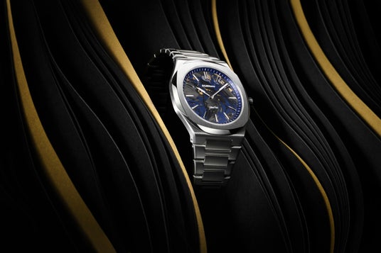 ブルーのブラスダイヤルに走るゴールドのニュアンスは、日本の伝統技法「金継ぎ」に着想を得たデザイン。欠けたものを美として蘇らせるという思想をモチーフに、ダイヤルに独特の奥行きを与えています。39mmのステンレススチールケースに反射防止サファイアガラスを採用し、ダイヤルの質感をクリアに映し出します。