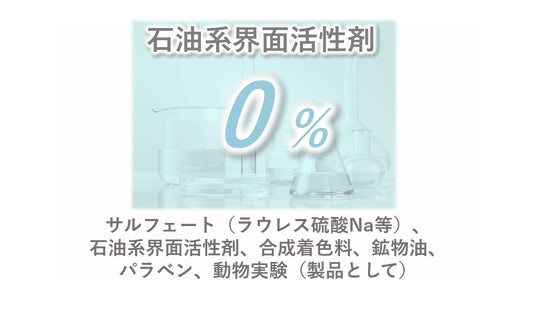 頭皮や髪の毛への負担を考え、オレフィン(C14ー16)スルホン酸Naなどの石油系洗浄成分をはじめ、6つの無添加・フリー処方で頭皮や髪にやさしい処方を追求しました。