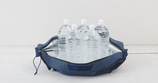 『Shupatto 保冷バッグ 20L』は、一気にたためてコンパクトになる特長に保冷機能をプラスしました。2L ペットボトルが 5 本入る容量で、お買い物からアウトドアまで、幅広い用途でお使いいただけます。使いやすさにもこだわりました。袋口を 2 層構造にすることで、持ち手を絞って肩に掛けられ、ファスナーの開閉もスムーズにできます。手提げひも付きで、お買い物時はカートに掛けておけます。表生地には撥水生地を使用し、急な雨でも安心です。色柄は「インディゴストライプ」と「フローズンコーン」の2 種からお選びいただけます。