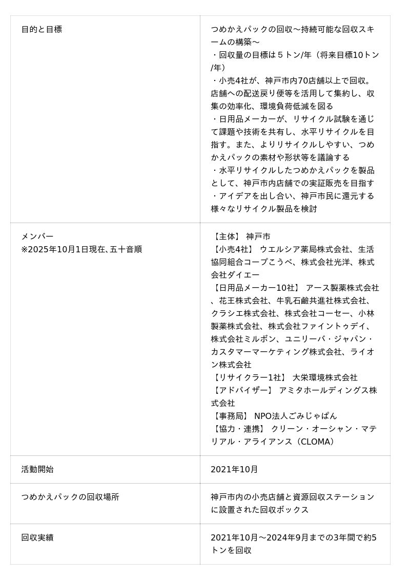 ■「神戸プラスチックネクスト~みんなでつなげよう。つめかえパックリサイクル~」の概要※