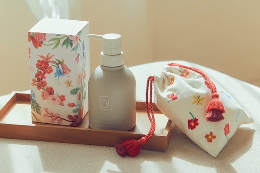 また「N organic」が贈る2026年の母の日限定ギフトは、『TSUMUGU -紡ぐ-』をコンセプトに、刺繍のような立体感がアクセントになった化粧箱、花柄刺繍をあしらった巾着ポーチ、刺繍デザインのショッパーをセットにした仕様で発売いたします。