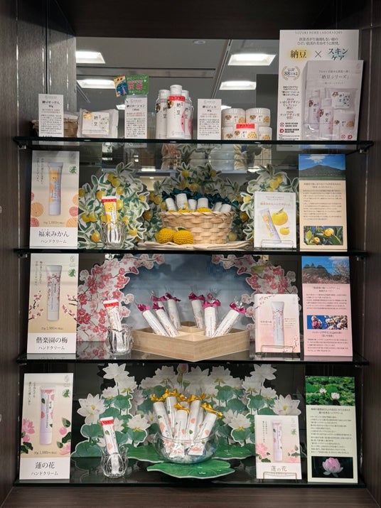 茨城県東海村を拠点とする株式会社鈴木ハーブ研究所は、県の魅力を多くの方に知っていただきたいという想いから、茨城県の特産品を活かしたご当地コスメを開発し、自社WEBサイトや茨城県アンテナショップ、茨城空港、道の駅などで販売しています。今回新たに、アートホテル鹿島セントラル内「SONIA COFFEE」で「偕楽園の梅ハンドクリーム」「福来みかんハンドクリーム」「蓮の花ハンドクリーム」「納豆ローション」「納豆ジェル」「納豆せっけん」の6商品が取り扱い開始となりました。