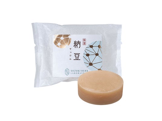 納豆ローションにも含まれる「ポリグルタミン酸」、植物性コラーゲンの「ナットウガム」など、美容液にも十分使用できるハーブエキスをそのまま練り込んだ贅沢なせっけん。キメ細かく濃密でもっちりとした泡で、毛穴の汚れまできれいに取り除きながら美肌成分を肌にいきわたらせます。