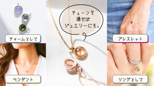 K18またはPt900で仕立てた宝石チャームが9,800円(税込)から。