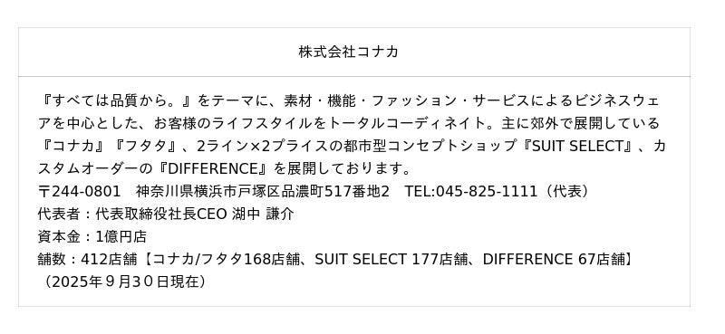 株式会社コナカでは、お客様の利便性と接客サービスの向上により、さらにショッピングを楽しんでいただけるよう今後も取り組んでまいります。