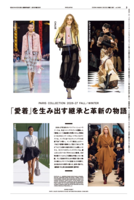 3月23日発売の「WWDJAPAN」は、2026-27年秋冬パリ・ファッション・ウイークの特集です。豊富な写真と分析で、今シーズンのベストブランドと傾向をまとめました。