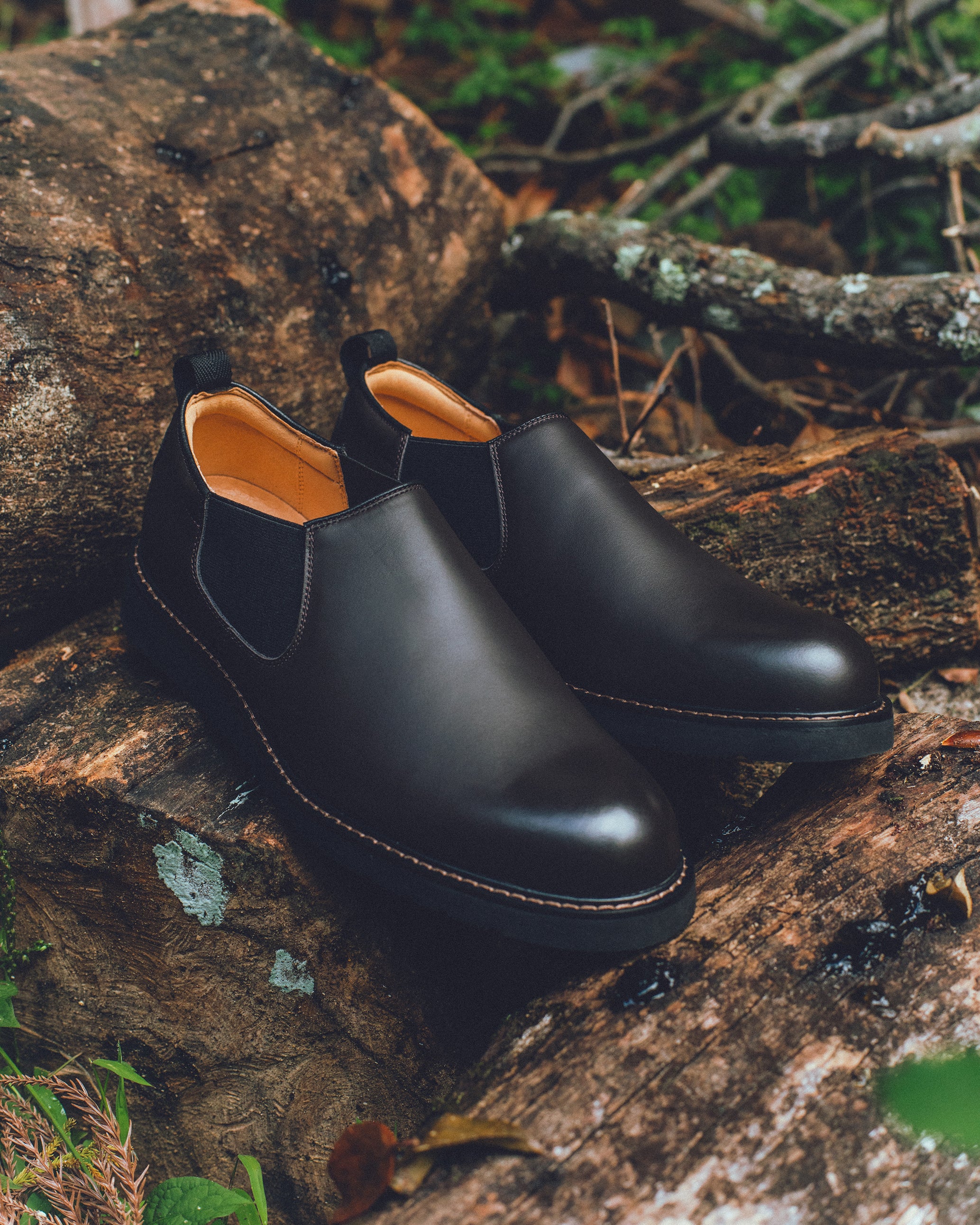 サイドゴアスリッポンは、着脱の容易さに加え、高いフィット感と安定性に優れています。余計な装飾を省いたミニマルなデザインは、幅広いスタイルに馴染みます。